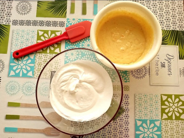 Взбитые белки аккуратно вмешайте в тесто лопаткой.