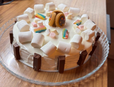 Рецепт супер простой,а крем мои домашние чуть не съели еще до сборки торта. Готовила на день рождение ребенку. Собрала кучу комплиментов.