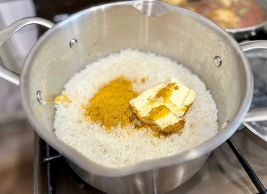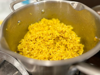Брала рис жасмин, он сам по себе ароматный, куркума добавляет еще свой особенный оттенок, плюс добавила зиру, так что рис стал еще более пряным и насыщенным, и благодаря такому подробному рецепту получился идеальным - рассыпчатым и сочным. По времени всё получилось чётко, никаких проблем- все точно как написано в рецепте. В готовое блюдо добавляла мясной бульон и сыр, так для меня по вкусу вышло еще насыщеннее. Праздничный рис к праздничному столу! Беру в копилку рецептов с удовольствием. Благодарю за рецепт!