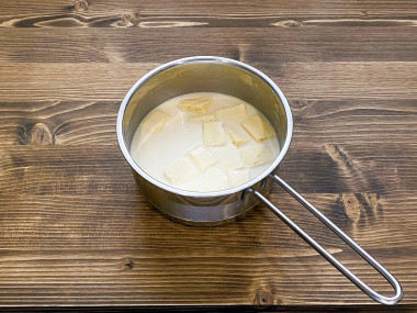Сливочное масло растопите на медленном огне. Можете воспользоваться для этого микроволновкой, хотя нам все равно потребуется включенная плита. Кастрюля с маслом должна стоять на плите на слабом огне. Берите кастрюлю с толстым дном. С выбором кастрюли поможет статья по ссылке в конце рецепта.