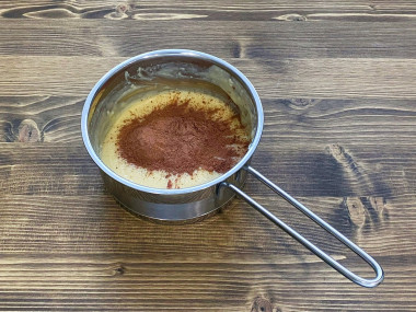 В одну часть пудинга добавьте какао и тщательно перемешайте. какао выбирайте качественный без каких-либо добавок. С выбором какао поможет статья по ссылке в конце рецепта. Переложите обе массы (обычный и шоколадный пудинг) в кондитерские мешки и остудите при комнатной температуре.