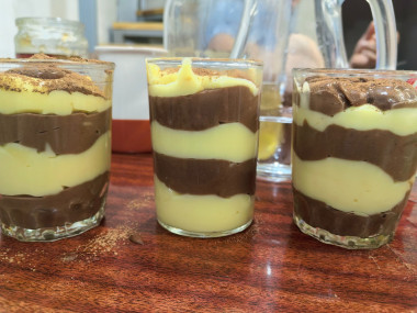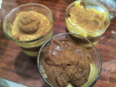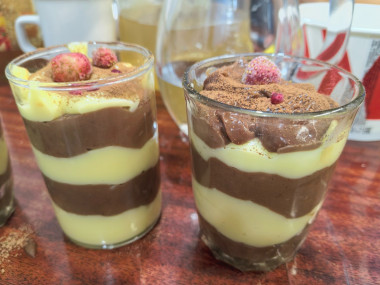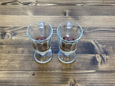 Потом разделила на две части, в одну добавила какао – и вот они, два вкуса в одном стакане! Слои вышли немножко кривоватые (я же не профи, ха-ха), но в прозрачных стаканах это даже мило смотрится. Главное – вкусно!
