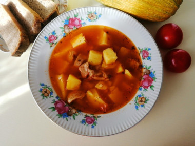 Этот рецепт напомнил мне похожее блюдо - хашлама из говядины с овощами.