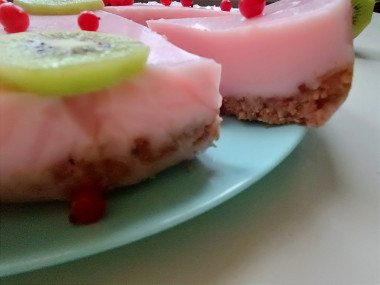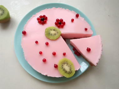 Я и моя семья очень любим тортики и разные десерты. Сегодня решила побаловать своих домочадцев йогуртовым тортом с фруктами. Приготовила все ингредиенты , йогурт взяла с клубникой и киви, а для украшения смородину и тот же киви. Признаюсь честно, с желатином никогда не имела дела. Но его пропорции и воды взяла строго по рецепту. Всё перемешала и поставила в холодильник для застывания .Вообщем выждала я два часа , достала, тортик застыл. Украсила и решила сразу же продигустировать .Наслаждение началось как только я начала его резать. Никаких усилий не надо, я ощутила всю нежность этого тортика. А когда кусочек попробовала, это просто райское наслаждение, воздушное, лëгкое на вкус. Во рту просто тает. Кто читает мой комментарий, обязательно сделайте, это же очень удобно, печь не надо, на ночь в холодильник тоже ставить не надо. А вот вкус торта, того стоит.