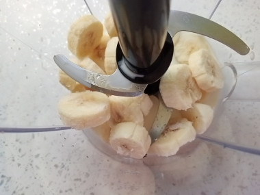 По истечении времени достаньте бананы из морозилки и, не размораживая, поместите в чашу блендера. Туда же добавьте молоко. По вкусу можете добавить ванилин.