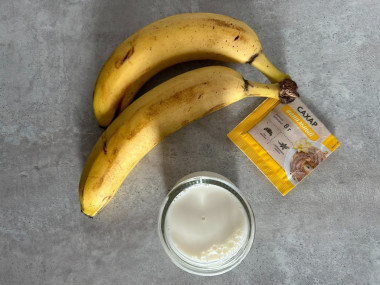 , то рассчитывайте пропорцию вместе с ней. Если же нет, то рассчитывайте пропорцию из того, что пойдет в блюдо (как известно, всё гениальное просто, а всё простое - гениально): то есть 2 части бананов БЕЗ кожуры и 1 часть молока. И хочу заострить Ваше внимание, что эта пропорция не строгая, всё регулируется по вкусу. Можно добавить чуть больше бананов или чуть меньше, смешать бананы с другими ягодами и фруктами - настоящий полигон для творчества!
