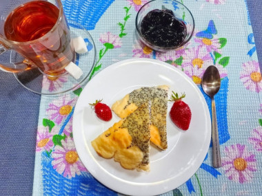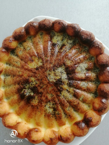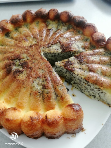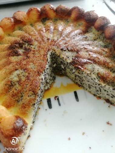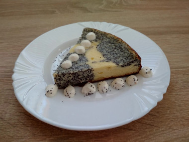 Запеканка с маком получилась вкусной и оригинальной. Взбила с помощью блендера творог, яйца и сахар (сахара взяла на одну столовую ложку больше, так как планировала подавать без варенья, только со сметаной), затем добавила манку и оставила набухать. Мак предварительно залила кипятком, после того, как он настоялся, откинула его на мелкое сито, чтобы стекла вся вода. Разделила творожную массу на две примерно одинаковые части, в одну из которых добавила мак. Выкладывала обе массы ложкой, формируя узор по своему желанию. На мой взгляд, лучше уменьшить количество мака примерно на треть и добавить его не в половину, а в меньшую часть теста, чтобы белой массы было значительно больше (так легче вырисовывать красивый узор). Но моей дочери понравилась именно маковая часть запеканки, она сказала, что "по вкусу - шедевр!" Выпекала в разъёмной форме диаметром 20 см при 180 градусах, поначалу запеканка высоко поднялась, даже треснула в двух местах, но после остывания при комнатной температуре осела и стабилизировалась. Получилась вкусной и красивой! Рекомендую!