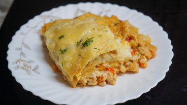 Подавайте лазанью с фаршем горячей к столу. Приятного аппетита!