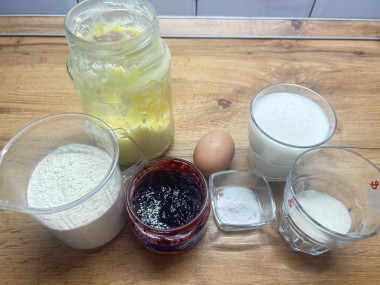 Как сделать пирог с черничным вареньем? Возьмите все необходимые ингредиенты.