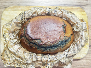 Возьмите форму для выпечки, смажьте ее растительным маслом и присыпьте мукой, чтобы пирог не прилип к форме и его легко можно было достать. Вылейте тесто в форму и поставьте в заранее разогретую до 180 градусов духовку. Выпекайте пирог 40-60 минут. Время указано приблизительно, ориентируйтесь на особенности своей духовки.