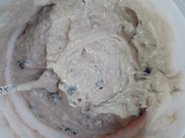 Увидела рецепт пирога с черничным вареньем и решила его приготовить. Только варенье взяла из йошты. Замесила тесто, как описано в рецепте, оно получилось довольно густое. Муки ушло чуть меньше указанного.