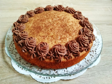 Пирог бисквитный простой испекла, когда гости были почти что на пороге. Уменьшила количество сахара и муки до 130 г. Яйца взбила миксером, но не сильно, не так, как на обычный бисквит. Разрыхлитель у меня был не очень хорошего качества, это я поняла после выпекания - кристаллики лимонной кислоты, входящие в состав, плохо растворились и оставили в готовом пироге темные точки на поверхности (кстати, то же самое было у меня при использовании самодельного разрыхлителя, поэтому я от него отказалась) и на вкус оставалась слабая кислинка. Не скажу, что это сильно повлияло на вкус пирога в целом, скорее я просто опытом делюсь))) Потому что бисквитный пирог получился очень вкусным, сверху я его присыпала светлым какао-порошком и украсила остатками шоколадного крема. Отличная выпечка к чаю!