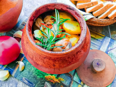 Как запечь индейку с картошкой в горшочках в духовке? Очень просто! Подготовьте все необходимые ингредиенты.