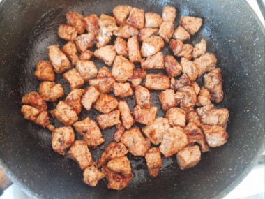 Периодически перемешивая, обжаривайте мясо на среднем огне до готовности около 20 минут.