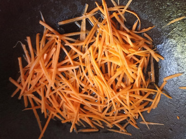 Морковь очистите от кожуры и натрите на крупной терке. Я использовала терку для корейской моркови.