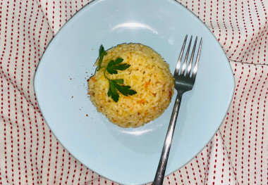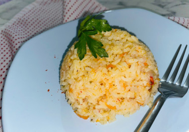Гарнир готовится легко и просто из доступных продуктов. Из-за содержащихся в гарнире овощей, можно подать даже, как основное блюдо с салатиком.