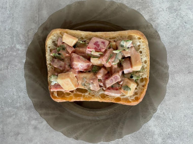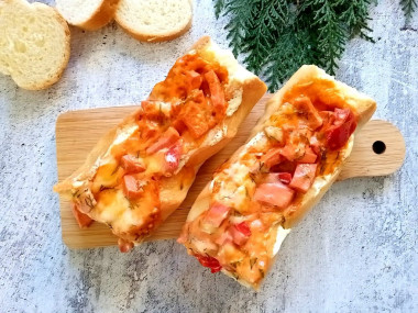 У меня после праздника остался подсохший багет, решила превратить его в большой "бутерброд". Багет был очень длинный, поэтому обрезала с концов сантиметров по 15, а из середины сделала лодочку. Для начинки взяла вкусную вареную колбасу, моцареллу заменила на маасдам, он тоже отлично плавится. Добавила помидоры и майонез. Кетчуп заменила на томатную пасту с добавлением чёрного перца и соли. Багет нафаршировала сочной начинкой и запекала в течение 15 минут. Сыр расплавился, а весь "бутерброд" хорошо прогрелся. Очень похоже на пиццу! Вкусно, сочно и сытно! Нам понравился такой перекус с горячим чаем.