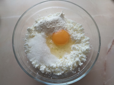 Как сделать сырники из мягкого творога быстро и вкусно? Подготовьте все необходимые ингредиенты. Творог берите натуральный, качественный, без заменителей молочного жира. О том, как подобрать творог для теста, читайте в отдельной статье, ссылка в конце рецепта. Творог переложите в отдельную ёмкость подходящего размера, добавьте яйцо и одну столовую ложку муки, добавьте сахар по вкусу.