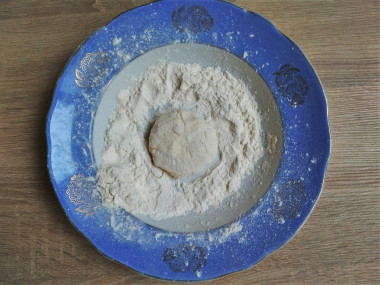 Тщательно перемешайте все ингредиенты. Сформируйте из полученного теста колбаску и нарежьте её на кусочки. Чтобы нарезать колбаску легко и аккуратно, посыпьте нож мукой перед нарезкой. Обваляйте кусочки оставшейся муке и сформируйте сырники.