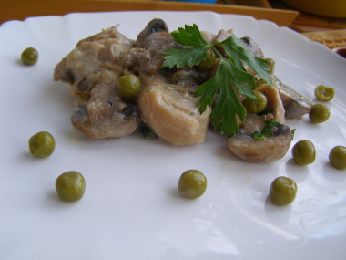 Я по такому рецепту тушу в сметанном соусе курицу с грибами в сковороде.