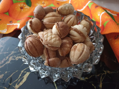 Испекла печенье в форме на плите. Достала из "закромов" советскую орешницу ( всё же не забываю про неё, периодически пеку грибочки-орешки). Тесто замешивала по рецепту автора ( сделала половину порции). Орешки получились хрустящие. Для начинки ,по просьбе внука, использовала варёное сгущённое молоко. Перемешала его с крошкой от выпечки орешков. Грецкие орехи не добавляла. Вкусное печенье из детства)). Спасибо автору!