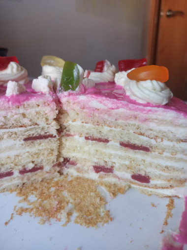 Следует иметь ввиду, что коржи очень хотят пить, возможно, в будущем попробую пропитать их молоком, чтобы сохранить крем. Рецепт возьму на заметку, крем буду использовать ещё во многих других десертах