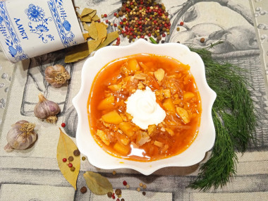 Обычно готовлю борщ со свининой или говядиной, но и с курицей будет неплохо. Нашла на сайте еще интересный вариант борща с квашеной капустой и курицей. Для разнообразия попробую.