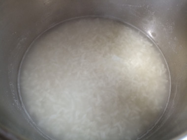 Рис промойте холодной водой несколько раз пока вода не станет прозрачной, залейте 2 стаканами воды и отварите до полуготовности. О том, какой выбрать рис и какую подобрать кастрюлю читайте в отдельных статьях, ссылки под рецептом.
