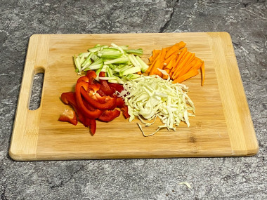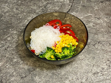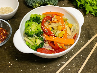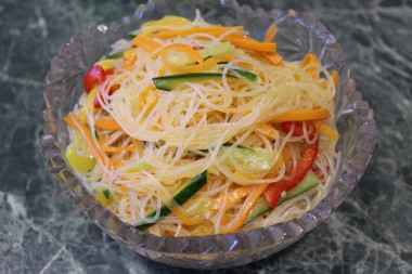 Салат с фунчозой овощами и соевым соусом