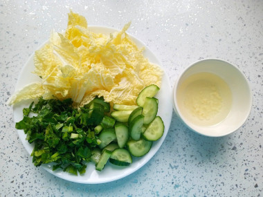 Вариантов такого салатика много. Помимо пекинской капусты, огурцов можно добавить помидоры, болгарский перец, рукколу.... Словом, смотрите рецепт.