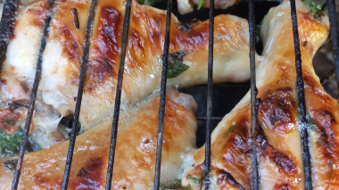 6. По истечении времени раскладываем мясо на решетке и запекаем в течение 25 минут, в процессе переворачивая.
