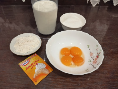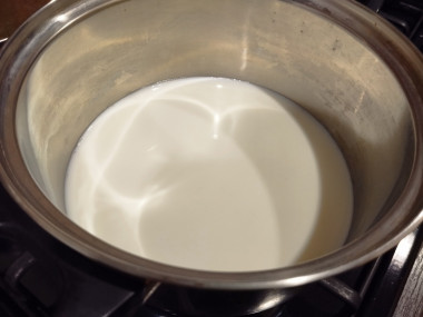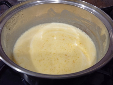 Итак, для начала выливаем молоко в кастрюльку и кипятим его. Затем отделяем яичные желтки от белков и растираем их с сахарным песком.