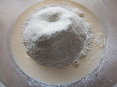 Добавьте соль и разрыхлитель, хорошо перемешайте, чтобы они равномерно распределились по муке.