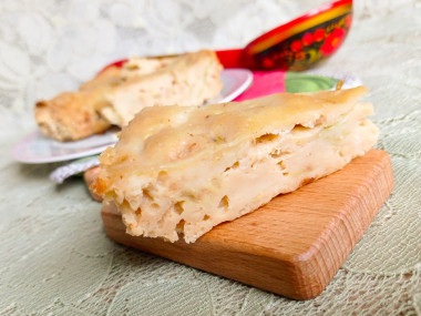 Испекла заливной пирог с капустой в мультиварке. Обжарила мелко нарезанный лук, нашинковала капусту, присолила ее, поперчила, добавила в мультиварку к луку, ещё немного поджарила всё вместе и переключила мультиварку в режим тушения. При замесе теста немного изменила последовательность: кефир присолила, перемешала с яйцами и сразу в эту массу стала частями просеивать муку с разрыхлителем , перемешивая тесто после каждой порции муки, чтобы контролировать его густоту. Муки у меня также ушло 2 стакана. Тесто переложила в мультиварку к тушёной капусте, перемешала и установила режим "выпечка" на 45 минут. Сверху присыпала пирог семенами кунжута. Мультиварка у меня старенькая, покрытие чаши уже не идеальное, при переворачивании низ пирога местами прилип ко дну(((. Пришлось по быстрому удалять прилипшее тесто и ложить на дно пергамент, чтобы допечь пирог с другой стороны. Ну это издержки моей кухонной техники, в следующий раз придётся перед выпечкой вынуть тушёную капусту из мультиварки , сполоснуть чашу, положить на дно пергамент и только потом выпекать пирог. Несмотря на небольшие сложности, пирог получился вкусный, с аппетитным ароматом жареной капусты, хорошо пропеченый, в меру влажный. Спасибо за рецепт, katushafin!