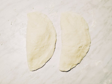 Накройте начинку другой половиной теста. Обрежьте край, формируя ровный полукруг. Так сформируйте 6 лепешек. Из обрезков теста получится еще 2 лепешки.