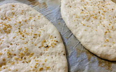Сама пеку хлеб и стараюсь искать новые рецепты, а особенно мне любопытны народные рецепты хлеба. Вот и сейчас испекла грузинский хлебушек «шоти», тесто подымалось довольно интересно, не как на другие хлеба, а пузырчато и не вверх, а по всей посуде. Тесто завела на две лепёшки, чтобы уместились в один противень. Для посыпки выбрала кунжут. Из духовки вынула через 15-20 минут при указанной температуре. Хлебушек отлично пропекся, подождав пока остынет, решила отломить кусочек, так приятно отломался, мягенький такой, нежный с хрустящей корочкой.