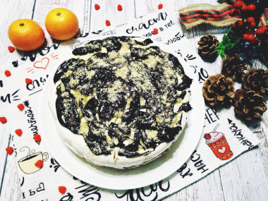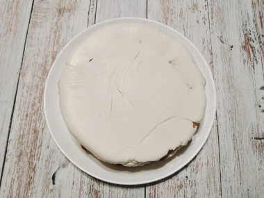 5. Таким образом собираем весь торт, верхний слой не смазываем, так как впоследствии это будет низ торта. Отправляем форму в холодильник как минимум на 2 часа.