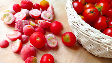 То же касается и помидоров черри. Переберите их, оставив только лучшие плоды без червоточин, вмятин. Вымойте их в холодной воде.