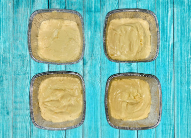 . Всё взбила, переложила ложкой в формочки, а вот лимонную цедра так и осталась, я её забыла добавить.