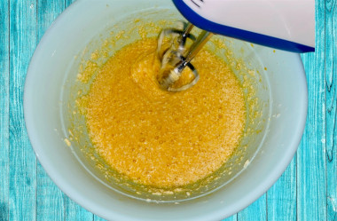 Не выключая миксер, постепенно влейте к масляной смеси яйца и взбивайте еще пару минут, чтобы масса стала однородной, а сахар полностью растворился.