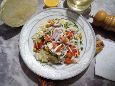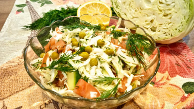 Салат из капусты с зеленым горошком