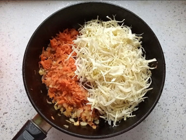 Выложите капусту на разогретую с растительным маслом сковороду.