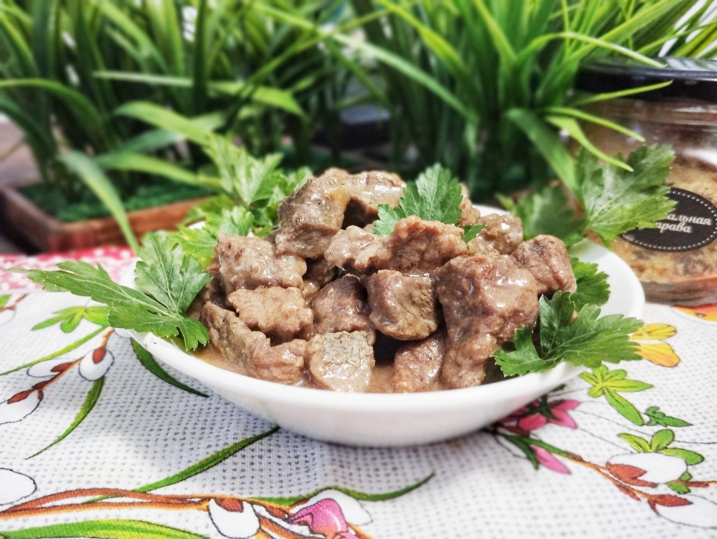 Не первый раз готовлю говядину с луком на сковороде. Это блюдо сочетается с любым гарниром! В этот раз подавала с картофельным пюре. Вкуснотища неописуемая!!