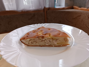 В готовом пироге очень мало получается теста, а оно очень вкусное, в следующий раз, попробую сделать побольше теста, на это же количество начинки, уж очень оно вкусное и воздушное.