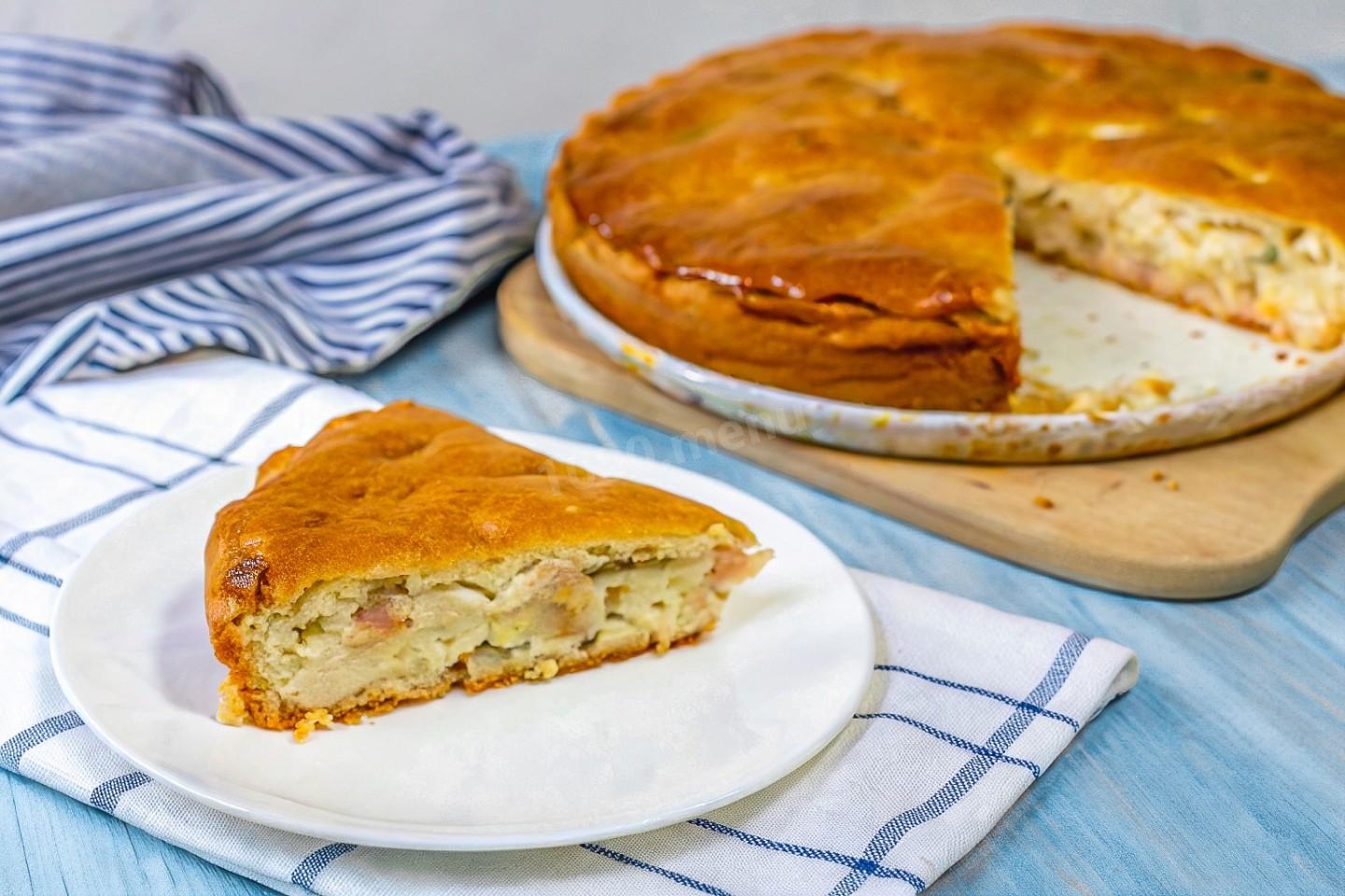 Испекла сегодня ваш простой и очень вкусный пирог на кефире с курицей.