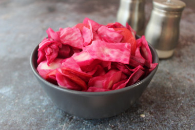 Свекла должна быть насыщенного бордового цвета, сладкая. Овощ промойте, почистите и нарежьте крупными брусочками.