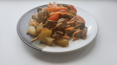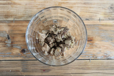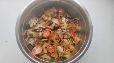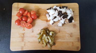 Грибочки и печенку быстро обжарила, все порезала. смешала и готово.