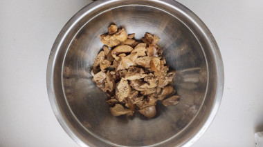 Покупайте свежие шампиньоны среднего размера, снежно-белого цвета без пятен, повреждений, запаха гнили. На ощупь они не должны быть скользкими. Тщательно промойте грибы от грунта под струей теплой или холодной воды. Вырежьте подпорченные места, если они есть. Миниатюрные грибочки размером до 2 см чистить совершенно не обязательно, достаточно их хорошо промыть. Более крупные шампиньоны рекомендуется чистить от пленочек.