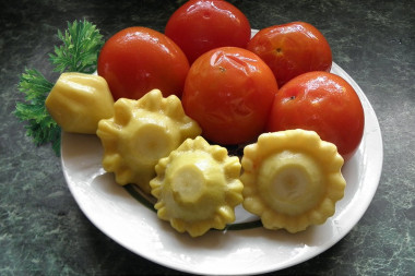 Интересная заготовка достойная внимания! Патиссоны с помидорами ассорти на зиму - это отличная комбинация для заготовки, они прекрасно дополняют друг друга. Готовить просто и быстро! Большое спасибо за рецепт!