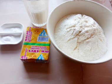 3. Муку просеиваем, смешиваем с солью, сахаром и содой.